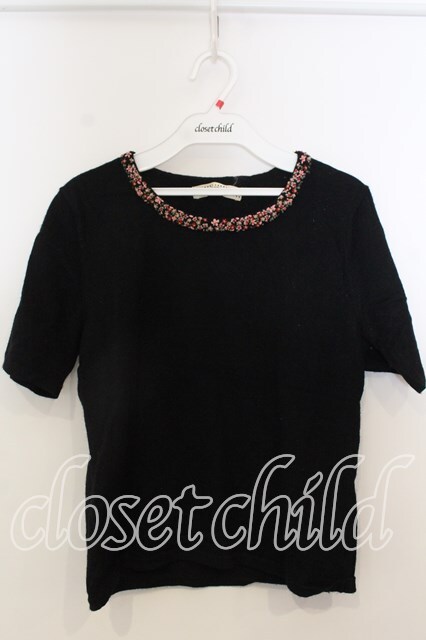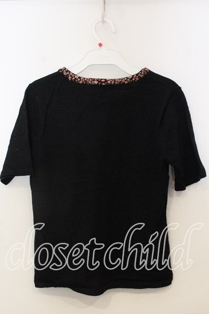 KANEKO ISAO / 花刺繍使いラメ入半袖ニット クロ O-25-12-19-031-EL-TO-OW-OS