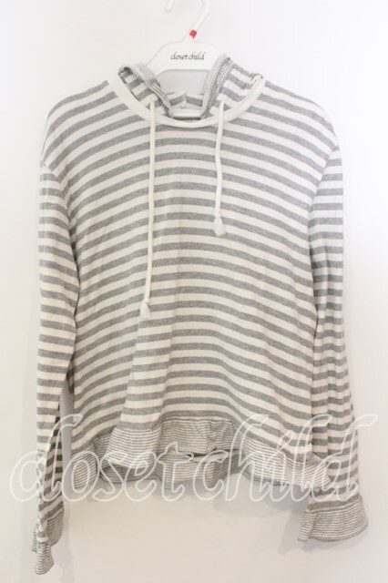 WONDERFUL WORLD / フード付きボーダーカットソー シロ×グレー O-25-12-19-042-LO-TO-OW-OS [2100080000068995-O-25-12-19-042-LO-TO-OW-OS]