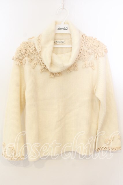 KANEKO ISAO / フラワーモチーフ使いタートルニット アイボリー O-25-12-19-050-EL-TO-OW-OS [2100080000069003-O-25-12-19-050-EL-TO-OW-OS]