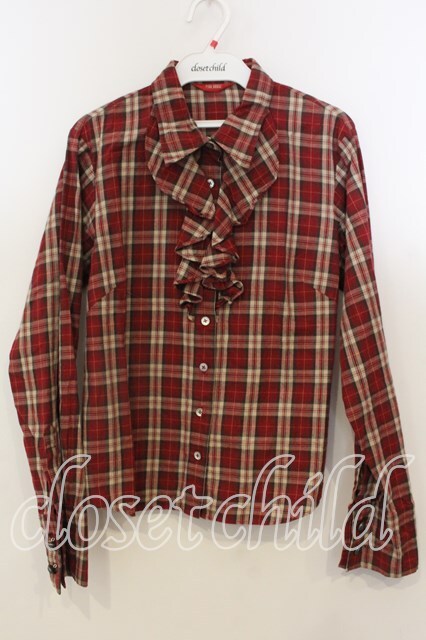 PINK HOUSE / フリル使いチェックブラウス L アカ O-25-12-19-033-LO-BL-OW-OS [2100080000068986-O-25-12-19-033-LO-BL-OW-OS]