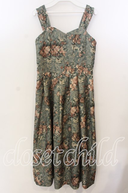 an another angelus / カーテンフラワー柄ジャンパースカート F グリーン O-25-12-19-018-CA-OP-OW-OS