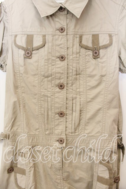 PINK HOUSE / 布テープ配色ワンピース カーキベージュ O-25-12-19-044-LO-OP-OW-OS