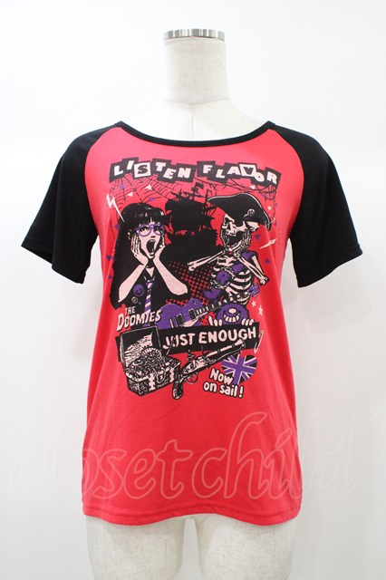 LISTEN FLAVOR / プリントTシャツ 赤 H-25-12-26-038-PU-TO-KB-ZH [2100030000081665-H-25-12-26-038-PU-TO-KB-ZH]