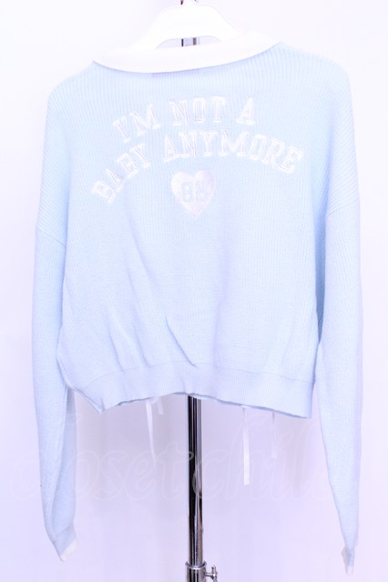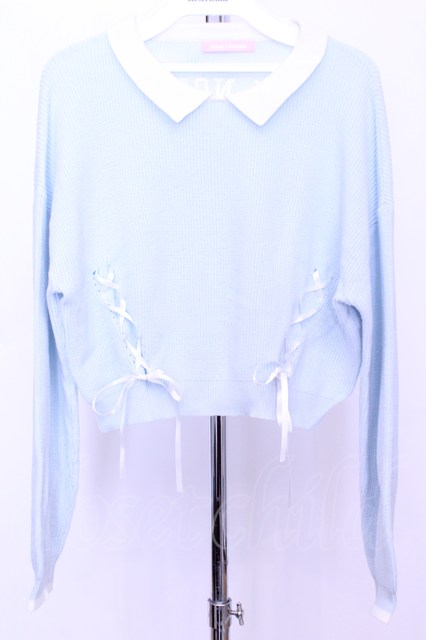 Honey Cinnamon / レースアップ襟付きショートニット サックス O-25-12-18-2030-LO-TO-IG-OS [2100080000068109-O-25-12-18-2030-LO-TO-IG-OS]
