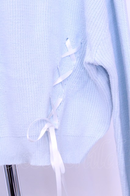 Honey Cinnamon / レースアップ襟付きショートニット サックス O-25-12-18-2030-LO-TO-IG-OS