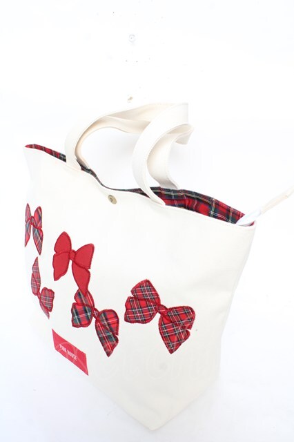 PINK HOUSE / リボンアップリケ トート オフ白 Y-25-12-18-016-LO-BG-SZ-ZY