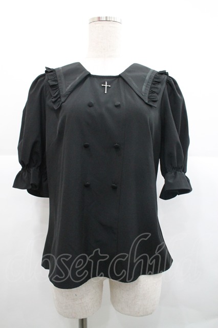 Ank Rouge / クロスチャームセーラー襟半袖ブラウス 黒 I-25-12-18-003-CA-BL-SA-ZI