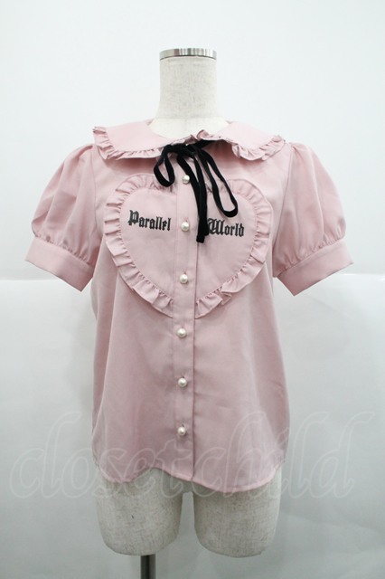 Ank Rouge / ハートフリル半袖ブラウス ピンクX黒 I-25-12-18-004-CA-BL-SA-ZI