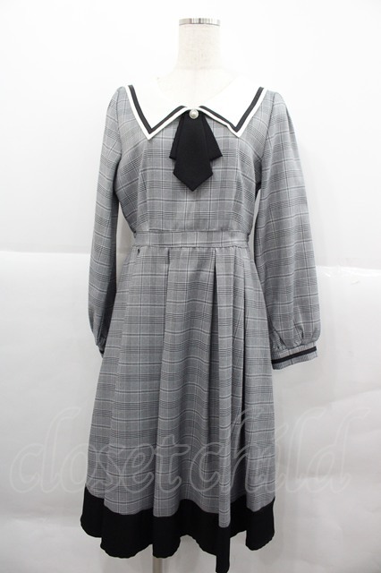 axes femme / ブローチ付セーラーワンピース グレーチェック I-25-12-18-081-AX-OP-SA-ZI