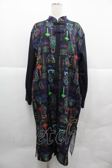 DXMOUVE / 臓器看板柄チャイナワンピース 黒Xカラフル I-25-12-18-085-PU-OP-SA-ZI [2100060000047812-I-25-12-18-085-PU-OP-SA-ZI]