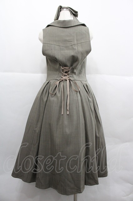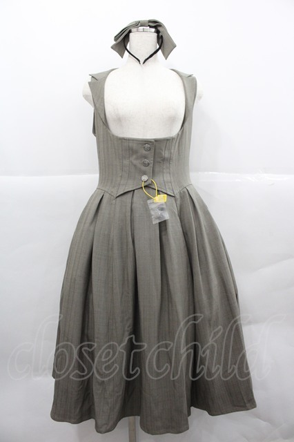 Forest Wardrobe 森林衣樹(海外ロリータブランド) / ストライプ地ジャンパースカート&リボンカチューシャセット グレー I-25-12-18-071-LO-OP-SA-ZI [2100060000044391-I-25-12-18-071-LO-OP-SA-ZI]