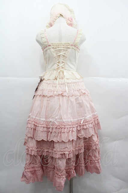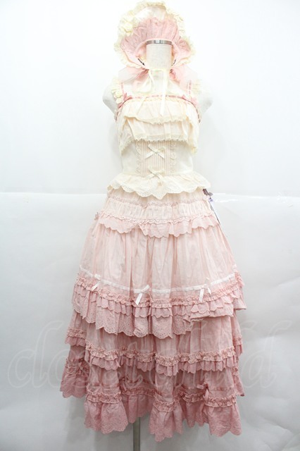 Mademoiselle Pearl(海外ロリータブランド) / 2段フリルキャミビスチェ&グラデスカートセット ピンクベージュ I-25-12-18-072-LO-TO-SA-ZI