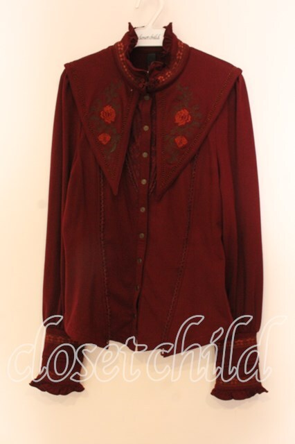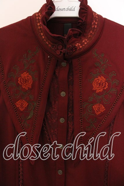 Ozz oneste / 和チャイナ刺繍裏起毛ブラウス ワイン O-25-12-20-037-OO-BL-OW-OS