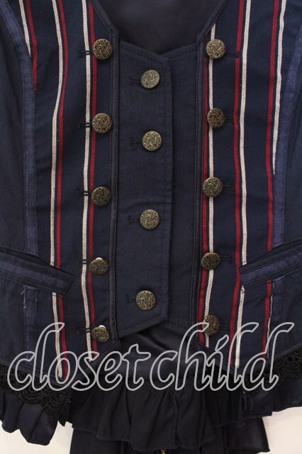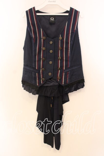 Ozz oneste / レジメンタルストライプバッスルベスト ネイビー O-25-12-20-030-OO-TO-OW-OS