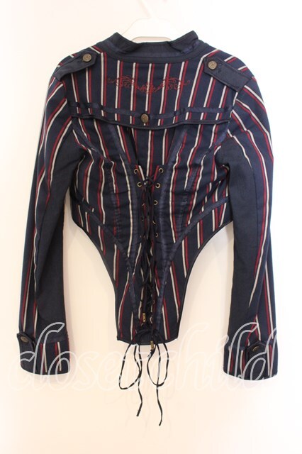 Ozz oneste / ストライプショートジャケット ネイビー O-25-12-20-031-OO-JA-OW-OS