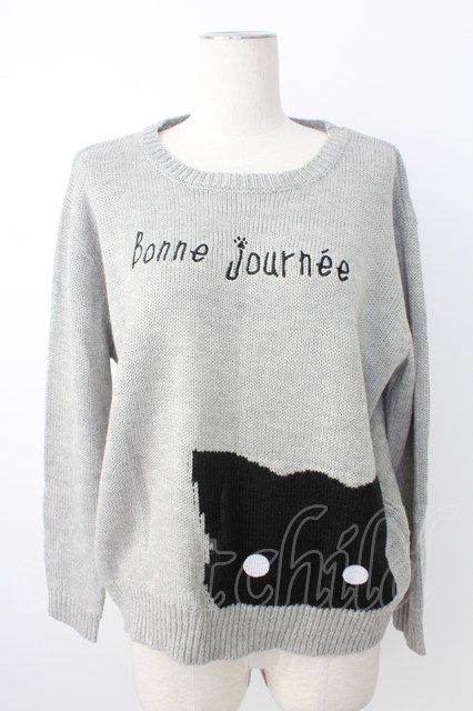 Rydia / コビニャーニットトップス グレーX黒 T-25-12-21-009-PU-TO-SA-ZT