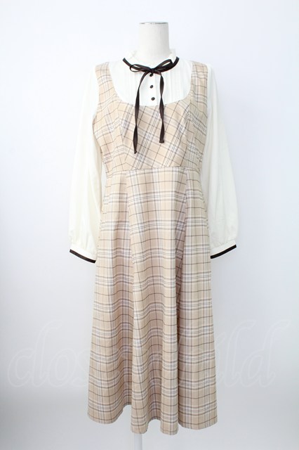 axes femme / レイヤード風チェック柄ワンピース ブラウン T-25-12-21-023-AX-OP-SA-ZT