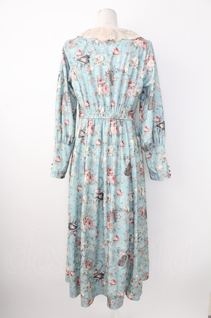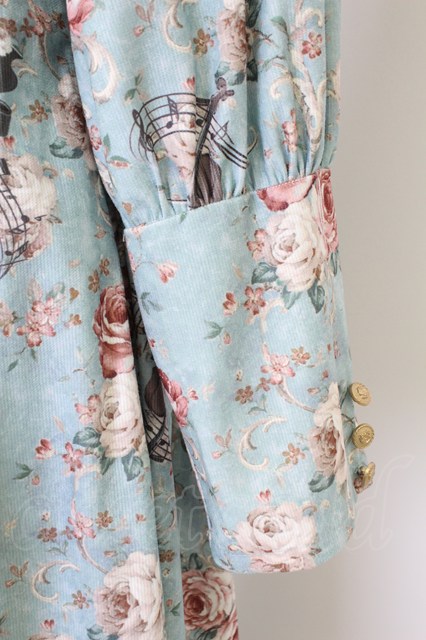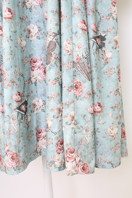 axes femme / 音楽と薔薇柄ドレス風ワンピース 青 T-25-12-21-026-AX-OP-SA-ZT
