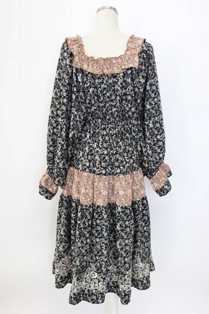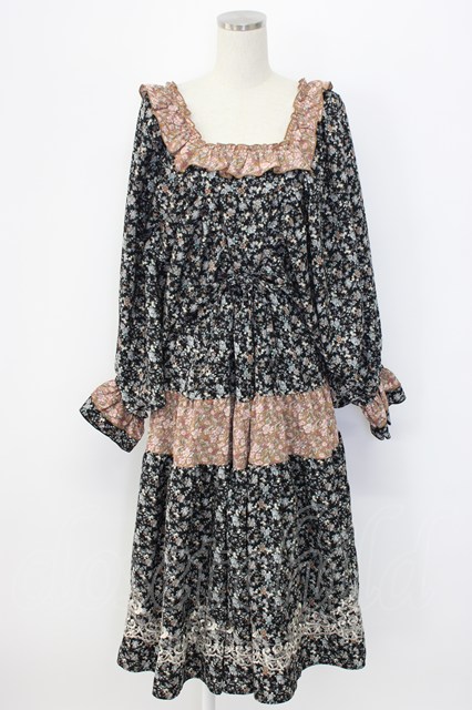 axes femme NOSTALGIE / 小花切替裾刺繍ワンピース M ブラック T-25-12-22-021-AX-OP-SA-ZT