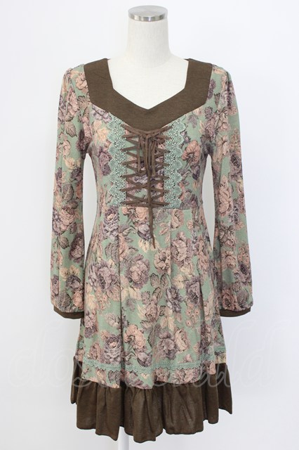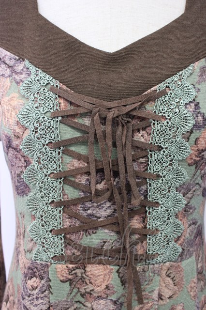 axes femme / ゴブランプリントチュニック M グリーン T-25-12-22-026-AX-OP-SA-ZT