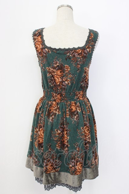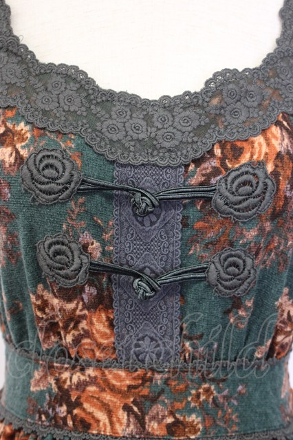 axes femme / アンティークブーケ柄チュニ グリーン T-25-12-22-027-AX-OP-SA-ZT