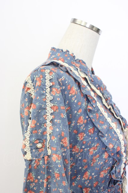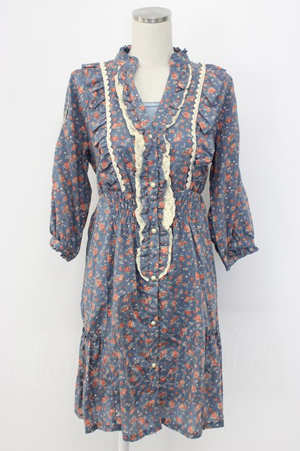 axes femme / 花柄前開きワンピース ブルー T-25-12-22-028-AX-OP-SA-ZT