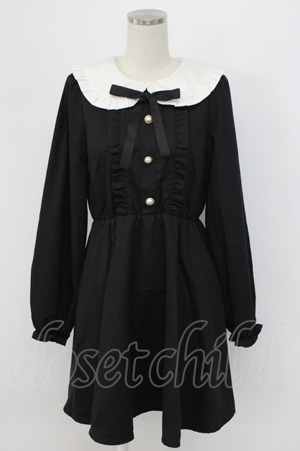 Honey Cinnamon / 丸襟ワンピース 黒X白 T-25-12-22-032-LO-OP-SA-ZT
