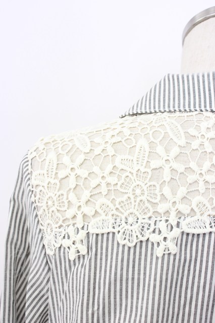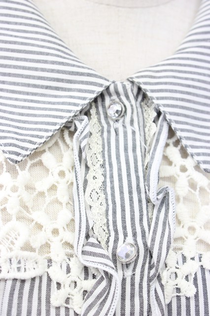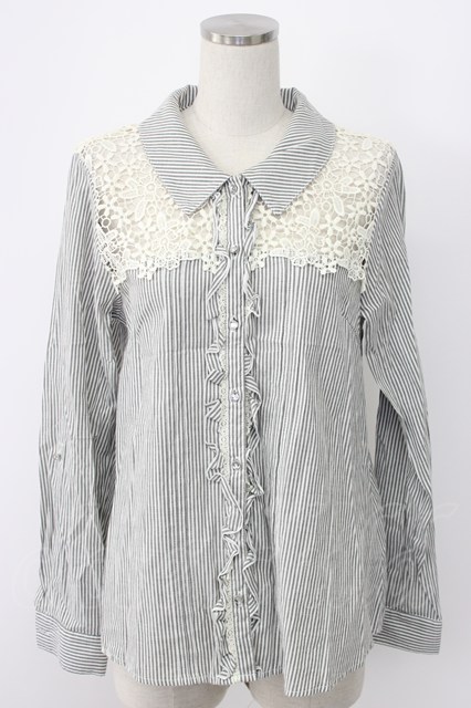 axes femme / 肩レース使いシャツ 黒X白 T-25-12-22-040-AX-BL-SA-ZT [2100060000025641-T-25-12-22-040-AX-BL-SA-ZT]
