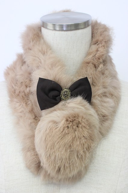 axes femme / ブローチ付きファーティペット モカ T-25-12-22-043-AX-ZA-SA-ZT