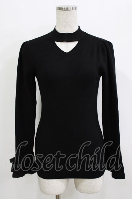 an another angelus / 袖口リボンチョーカーニットプルオーバー Free BLACK H-25-12-27-1044-CA-TO-NS-ZH