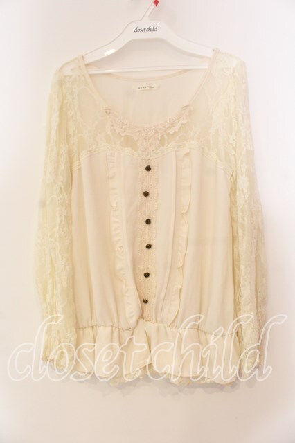axes femme / 裾レース透けブラウス M キナリ O-25-12-22-037-AX-BL-OW-OS [2100080000069167-O-25-12-22-037-AX-BL-OW-OS]