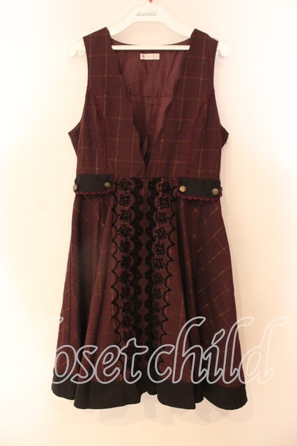 axes femme / グレンチェックジャンドレ M ワイン O-25-12-22-039-AX-OP-OW-OS