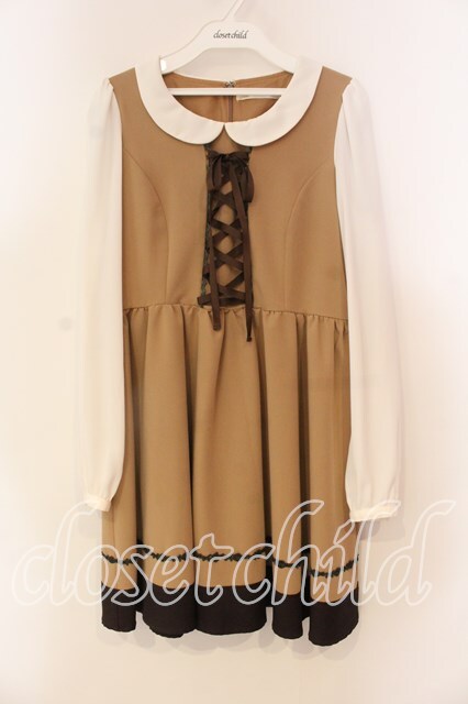 Ank Rouge / レースアップ丸襟ワンピース M ブラウン O-25-12-22-050-CA-OP-OW-OS