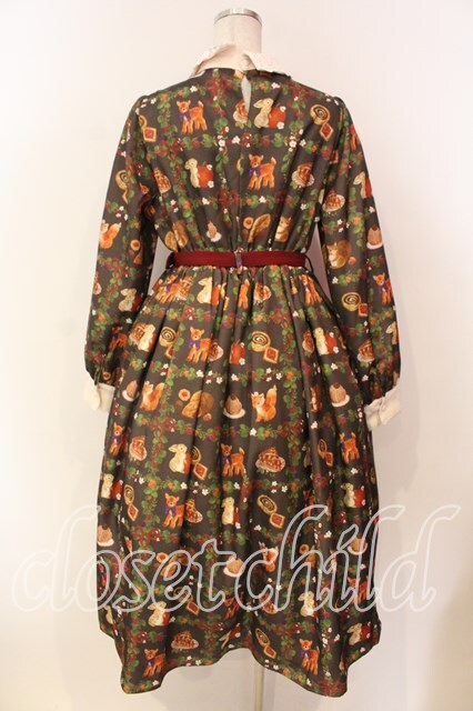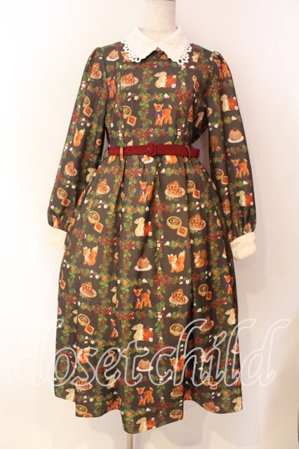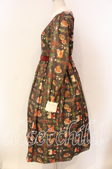 axes femme kawaii / 森のケーキ屋さん柄ワンピース ブラウン O-25-12-22-004-AX-OP-IG-OS