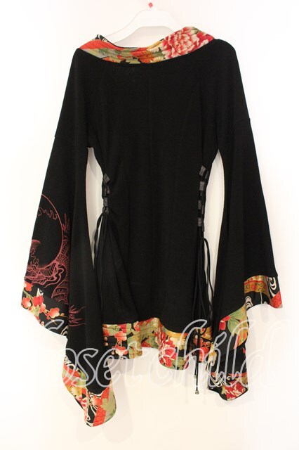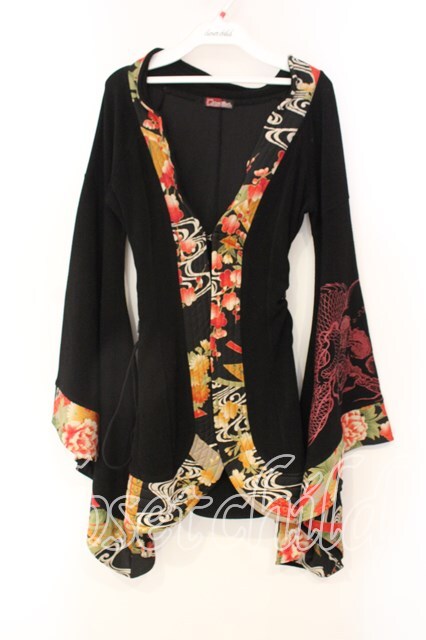 Qutie Frash / サイドレースアップ着物カーデ ブラック×オレンジ O-25-12-22-076-QU-TO-IG-OS [2100080000069239-O-25-12-22-076-QU-TO-IG-OS]