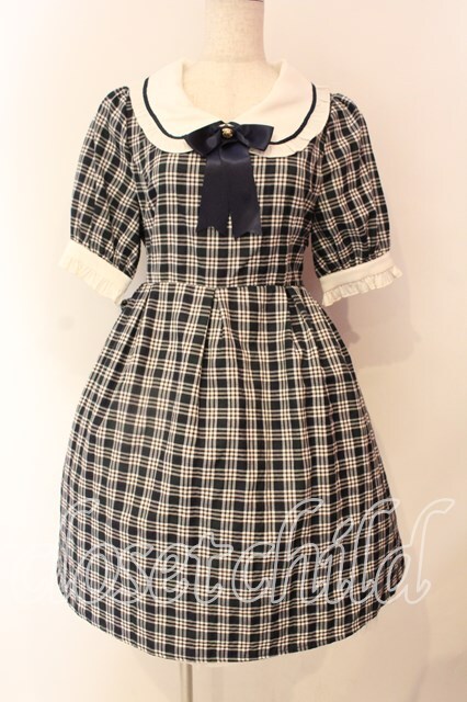 Amavel / ブローチ付きチェックワンピース F ネイビー O-25-12-23-049-CA-OP-YM-OS