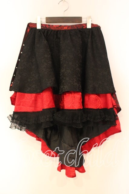 Qutie Frash / アシメラップスカート ブラックxレッド O-25-12-23-031-QU-SK-YM-OS