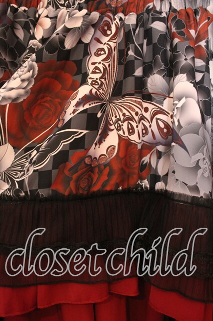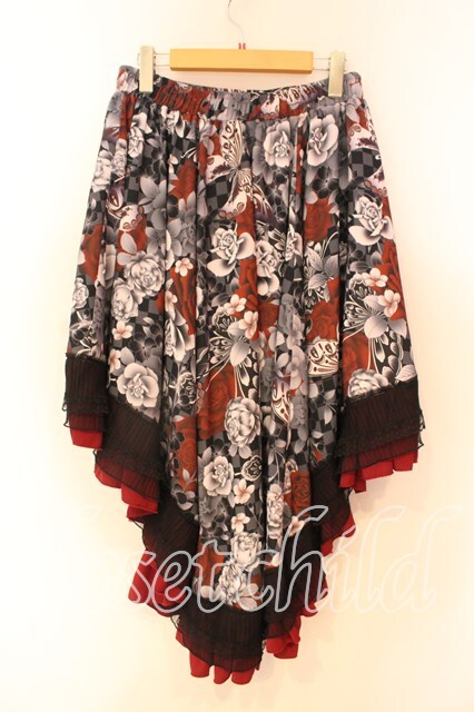 Qutie Frash / 後ろロングスカート ブラックxレッド O-25-12-23-032-QU-SK-YM-OS