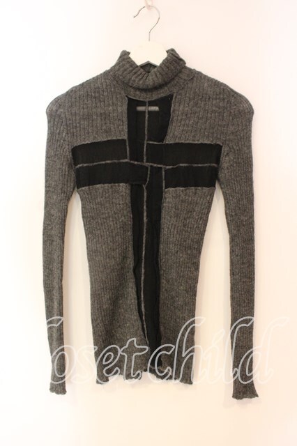 Jean Paul GAULTIER / スタンドネックリブクロスニット T160-168 グレーxブラック O-25-12-23-002-GO-TO-YM-OS [2100080000065881-O-25-12-23-002-GO-TO-YM-OS]