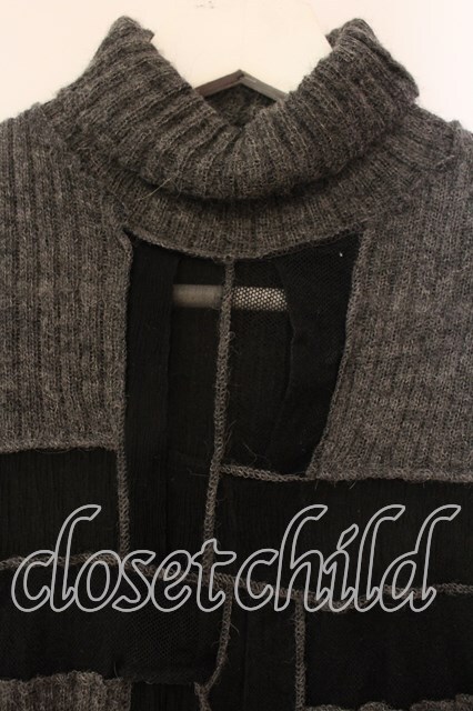Jean Paul GAULTIER / スタンドネックリブクロスニット T160-168 グレーxブラック O-25-12-23-002-GO-TO-YM-OS