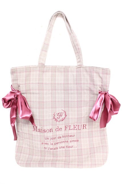 Maison de FLEUR / グレンチェックダブルリボントートバッグ 茶 Y-25-12-23-009-LO-BG-SZ-ZY [2100070000046402-Y-25-12-23-009-LO-BG-SZ-ZY]