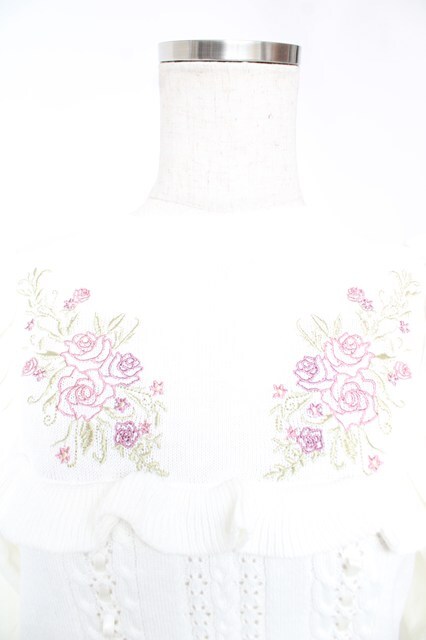 axes femme / バラ刺繍ブロッキングニット M 生成り Y-25-12-23-016-AX-TO-SZ-ZY