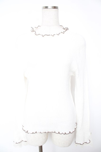 axes femme / 袖レースメローニットプルオーバー F 白 Y-25-12-23-019-AX-TO-SZ-ZY
