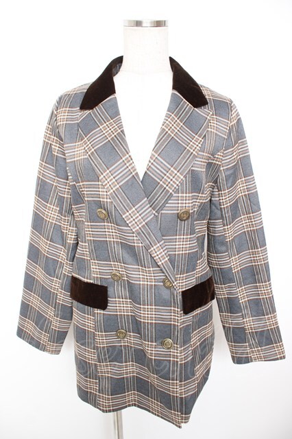 axes femme POETIQUE / チェック×別珍ロングジャケット M グレー Y-25-12-23-044-AX-JA-SZ-ZY [2100070000040543-Y-25-12-23-044-AX-JA-SZ-ZY]