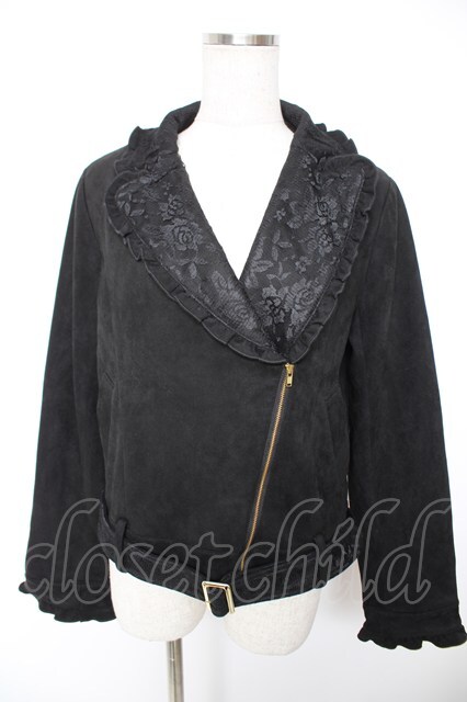 axes femme POETIQUE / スエードフリルライダースジャケット M 黒 Y-25-12-23-049-AX-JA-SZ-ZY