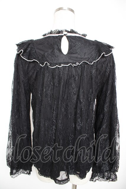 axes femme / バイカラーメローレースプルオーバー 黒 Y-25-12-23-056-AX-TO-SZ-ZY