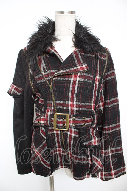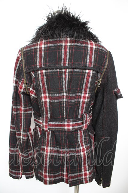 ALGONQUINS / ファー襟タータンライダースジャケット F 黒 Y-25-12-23-094-AL-JA-SZ-ZY [2100070000043729-Y-25-12-23-094-AL-JA-SZ-ZY]
