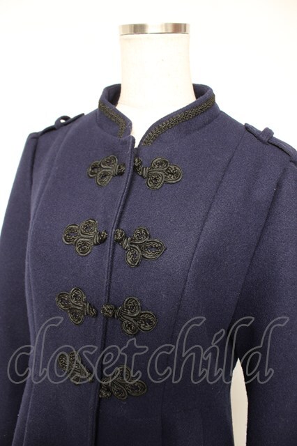 axes femme / チャイナ釦フレアラインコート 紺 Y-25-12-23-097-AX-CO-SZ-ZY