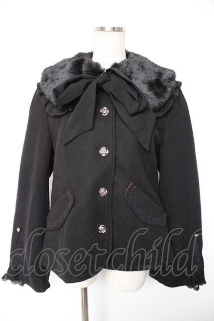 axes femme / ファー襟付編上ショートコート 黒 Y-25-12-23-128-AX-CO-SZ-ZY [2100070000043753-Y-25-12-23-128-AX-CO-SZ-ZY]