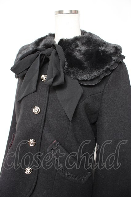 axes femme / ファー襟付編上ショートコート 黒 Y-25-12-23-128-AX-CO-SZ-ZY